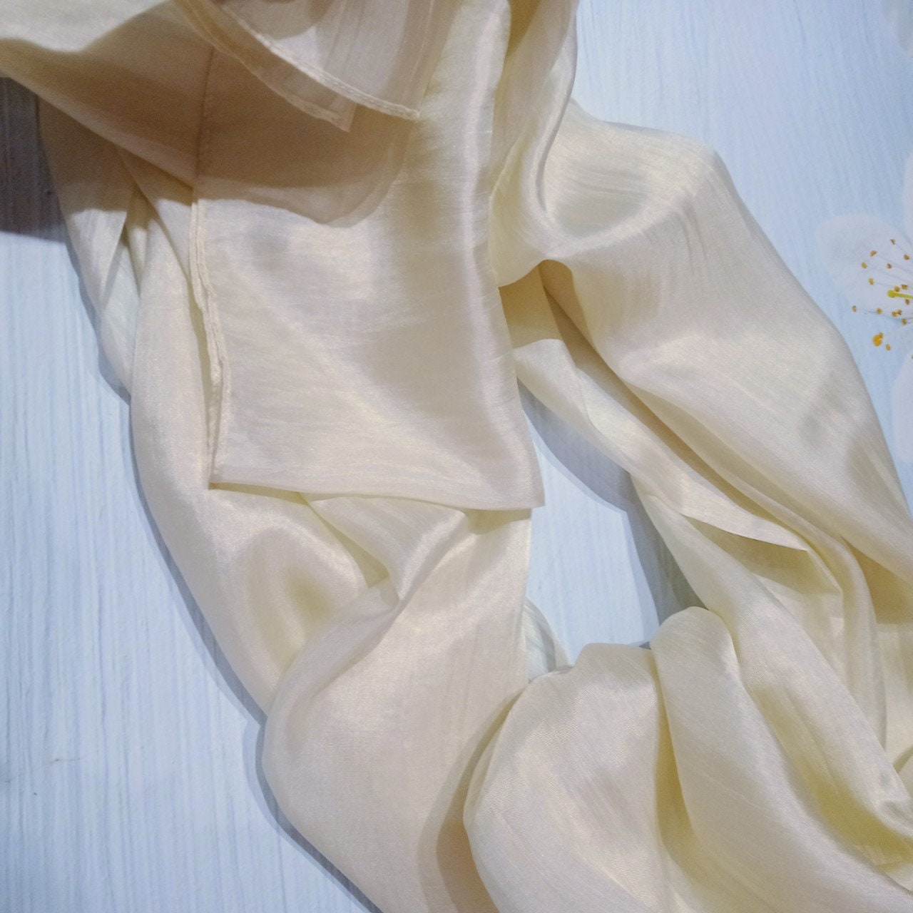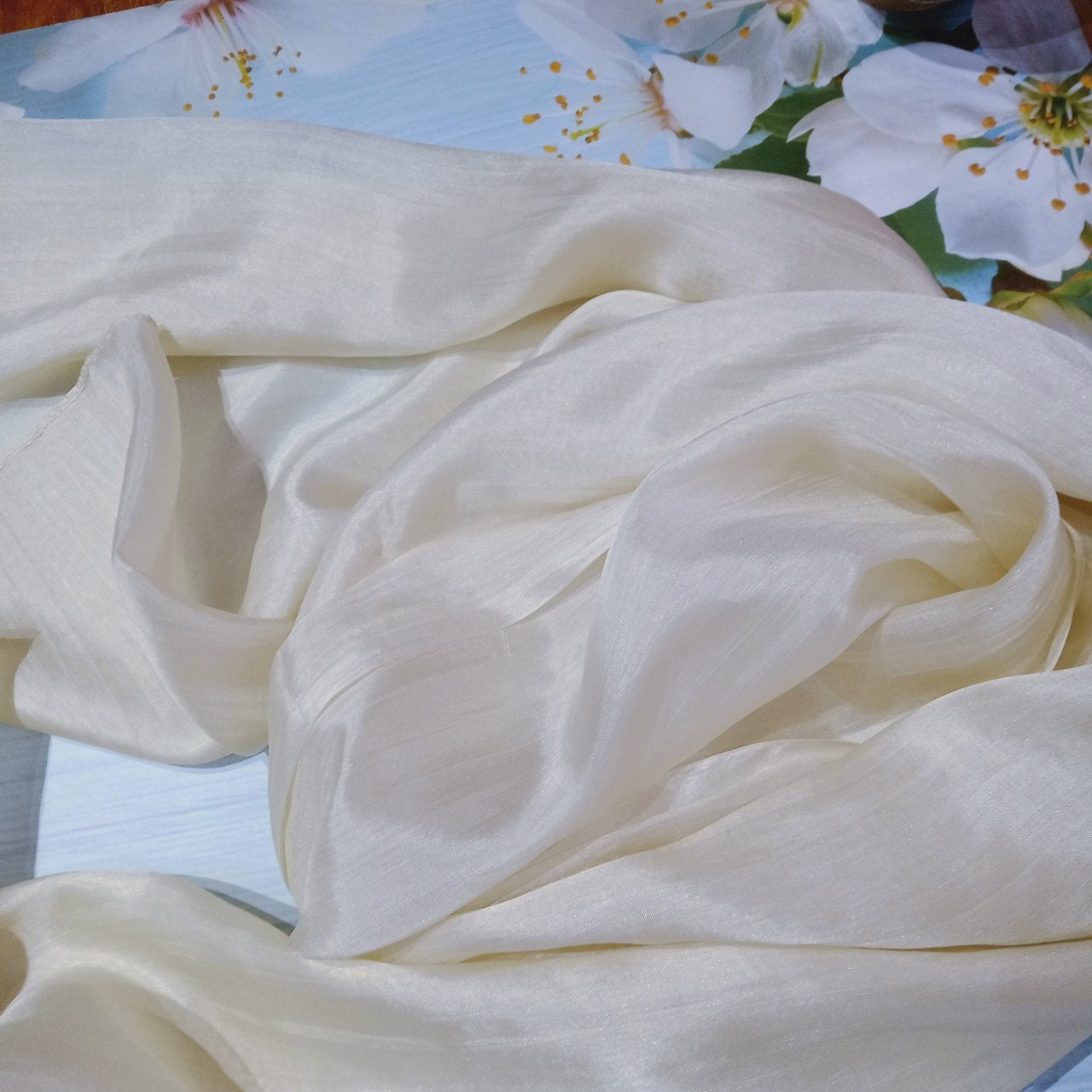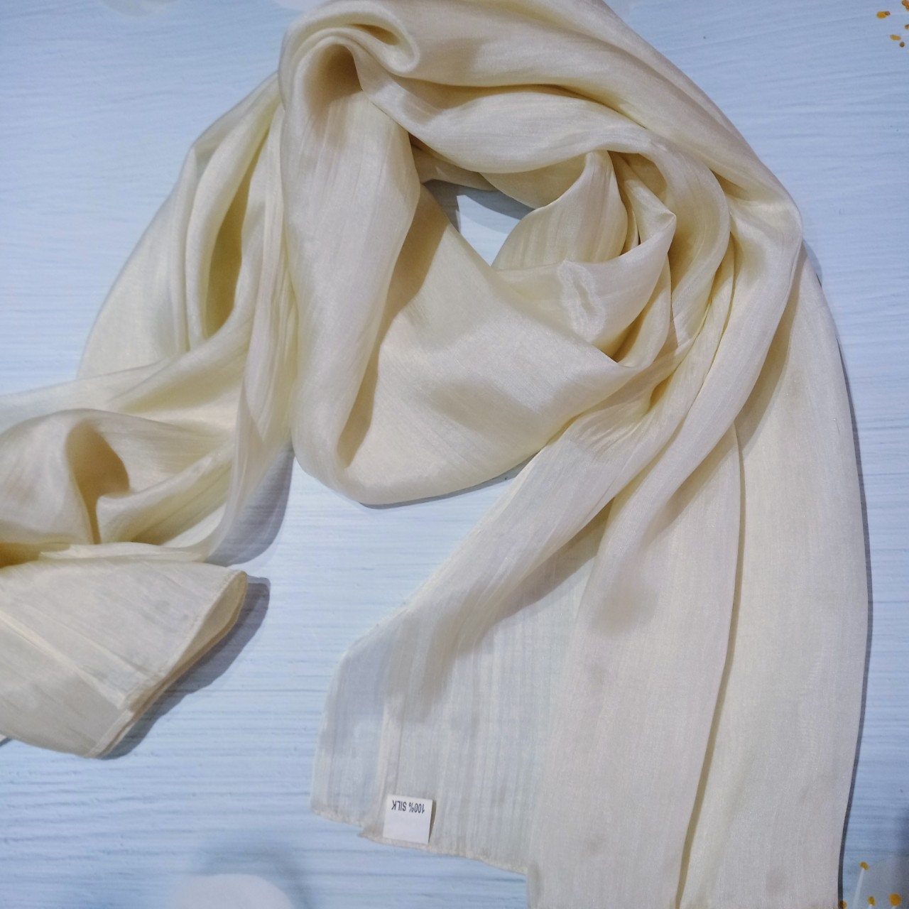 Khăn Lụa Tơ Tằm quàng cổ màu trắng kem#thanh lịch#nhẹ nhàng#thoáng mát, dùng được cả 4 mùa, kích thước 180cm*90cm