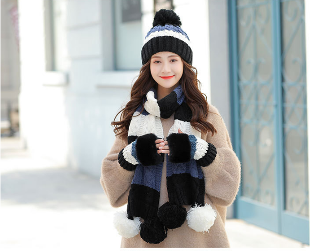 chất liệu: Len 2 lớp cao cấp, Mũ có lót Nỉ lông mềm- mịn bên trong, Găng tay gắn lông thỏ