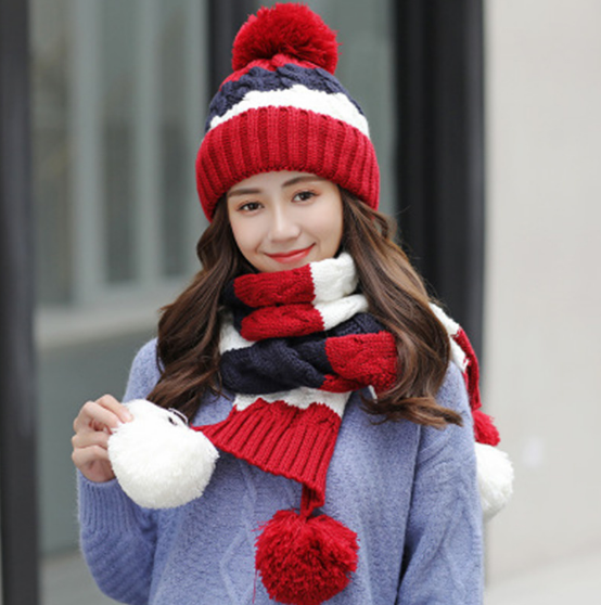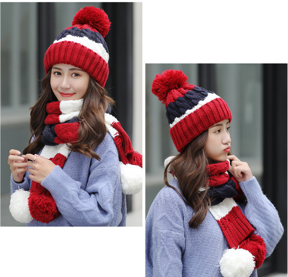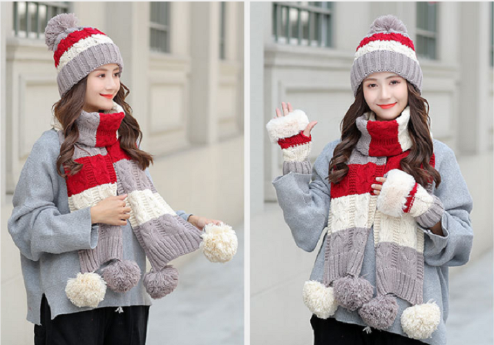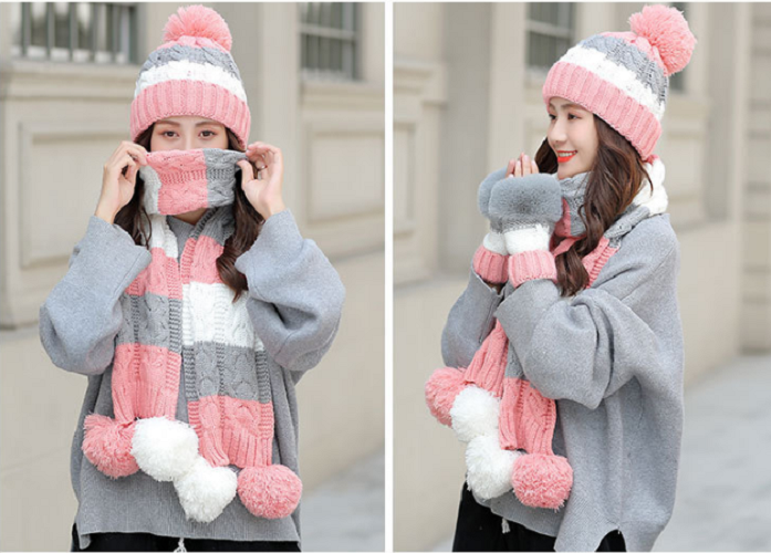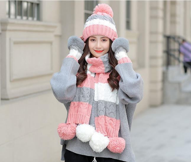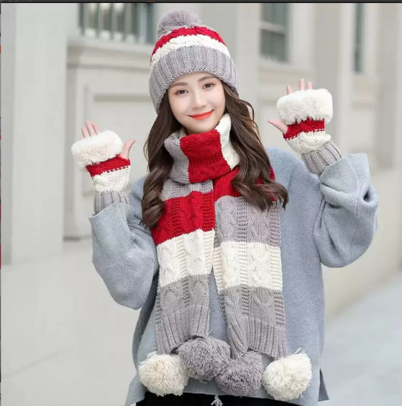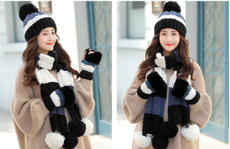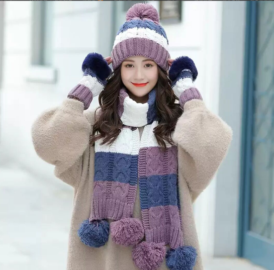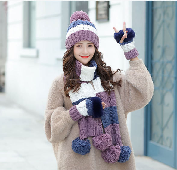 Bộ khăn mũ len kèm găng tay lót nỉ lông cao cấp cho nữ, sét nón len nữ 3 món cao cấp mới