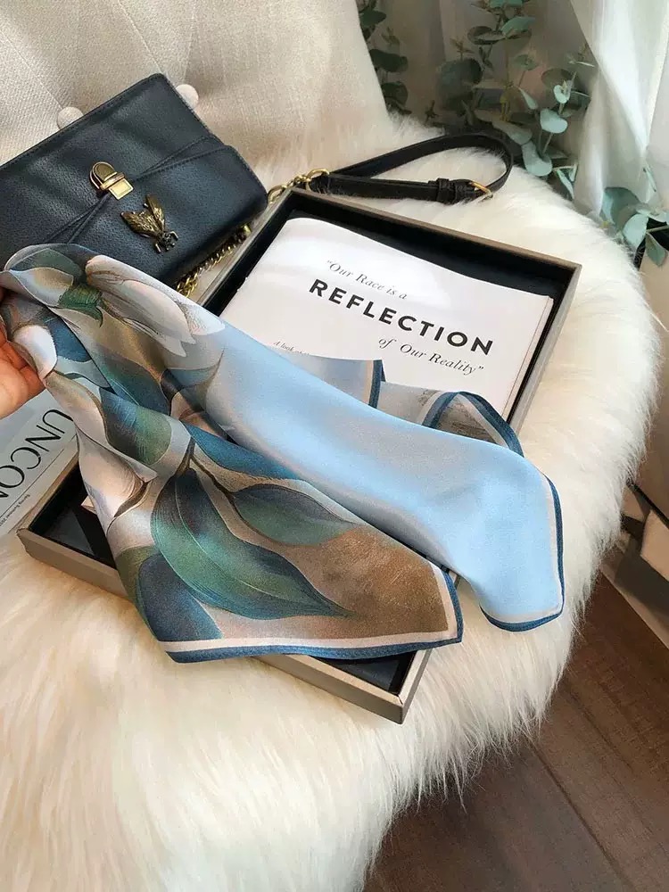 2. Thiết kế : Khăn quàng cổ hình vuông nhỏ. Phong cách phù hợp tất cả. Hoạ tiết sang trọng