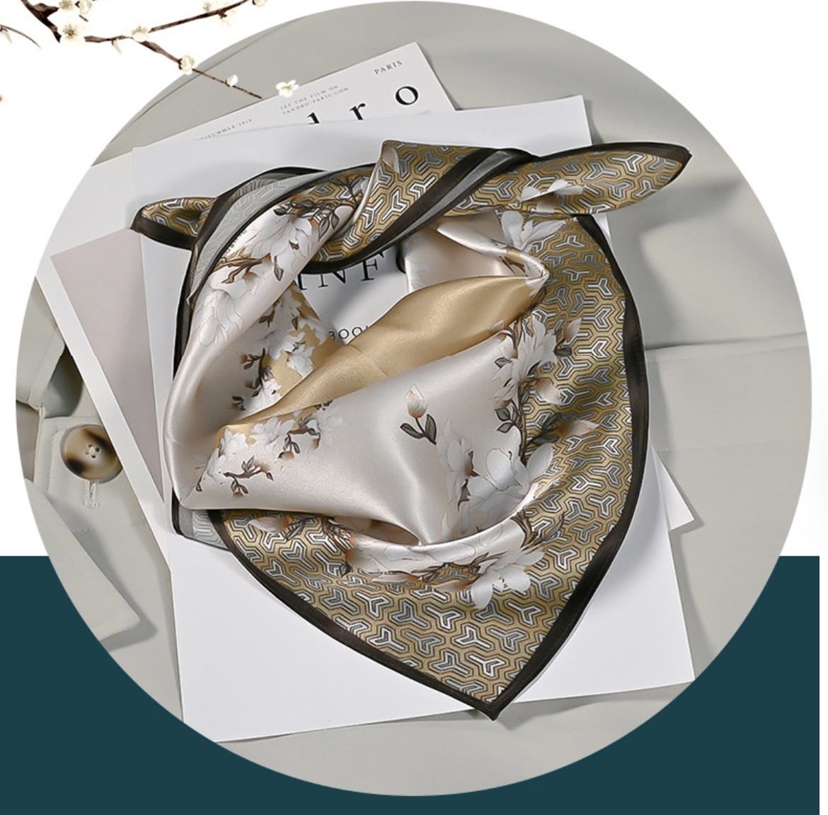2. Thiết kế : Khăn quàng cổ hình vuông nhỏ. Phong cách phù hợp tất cả. Hoạ tiết sang trọng