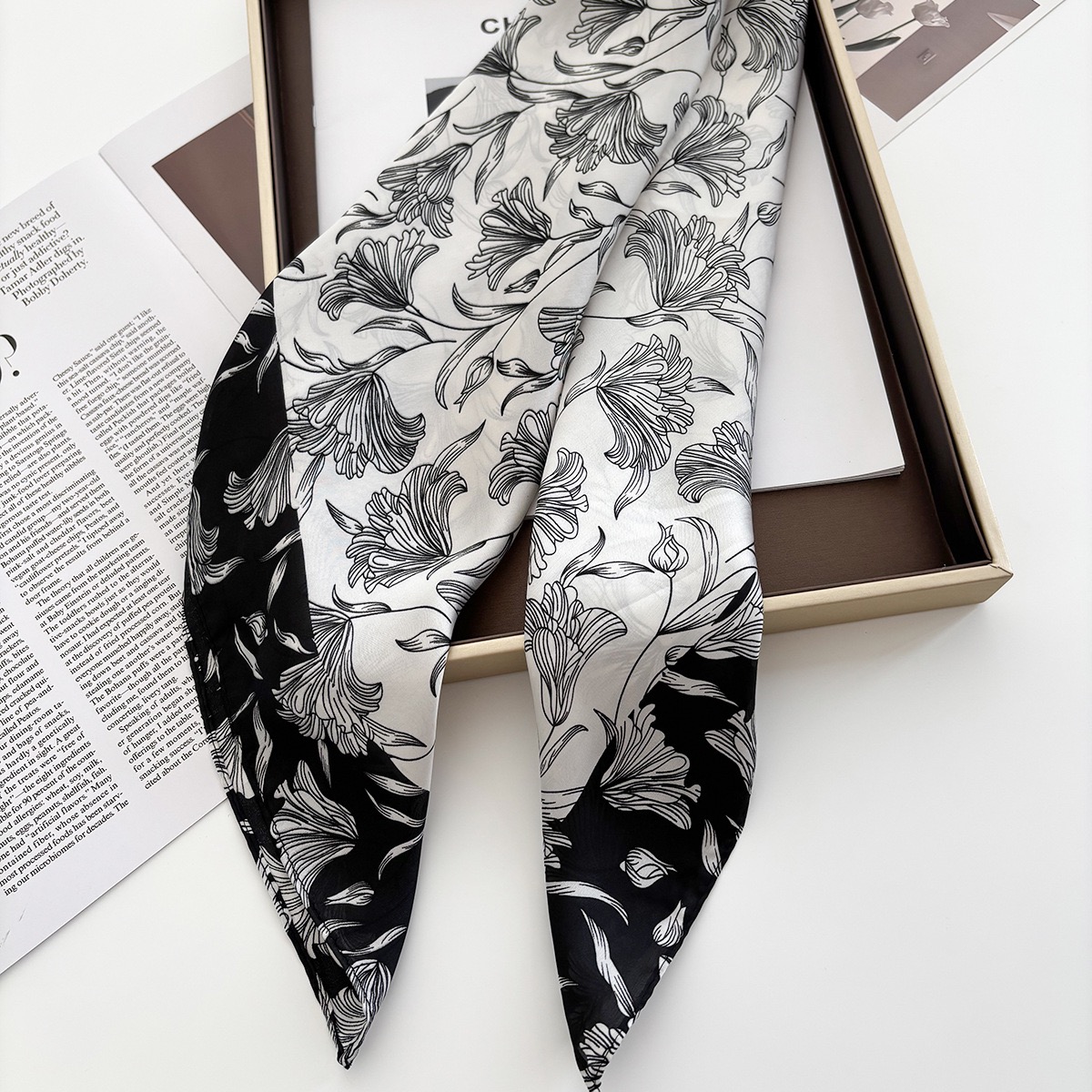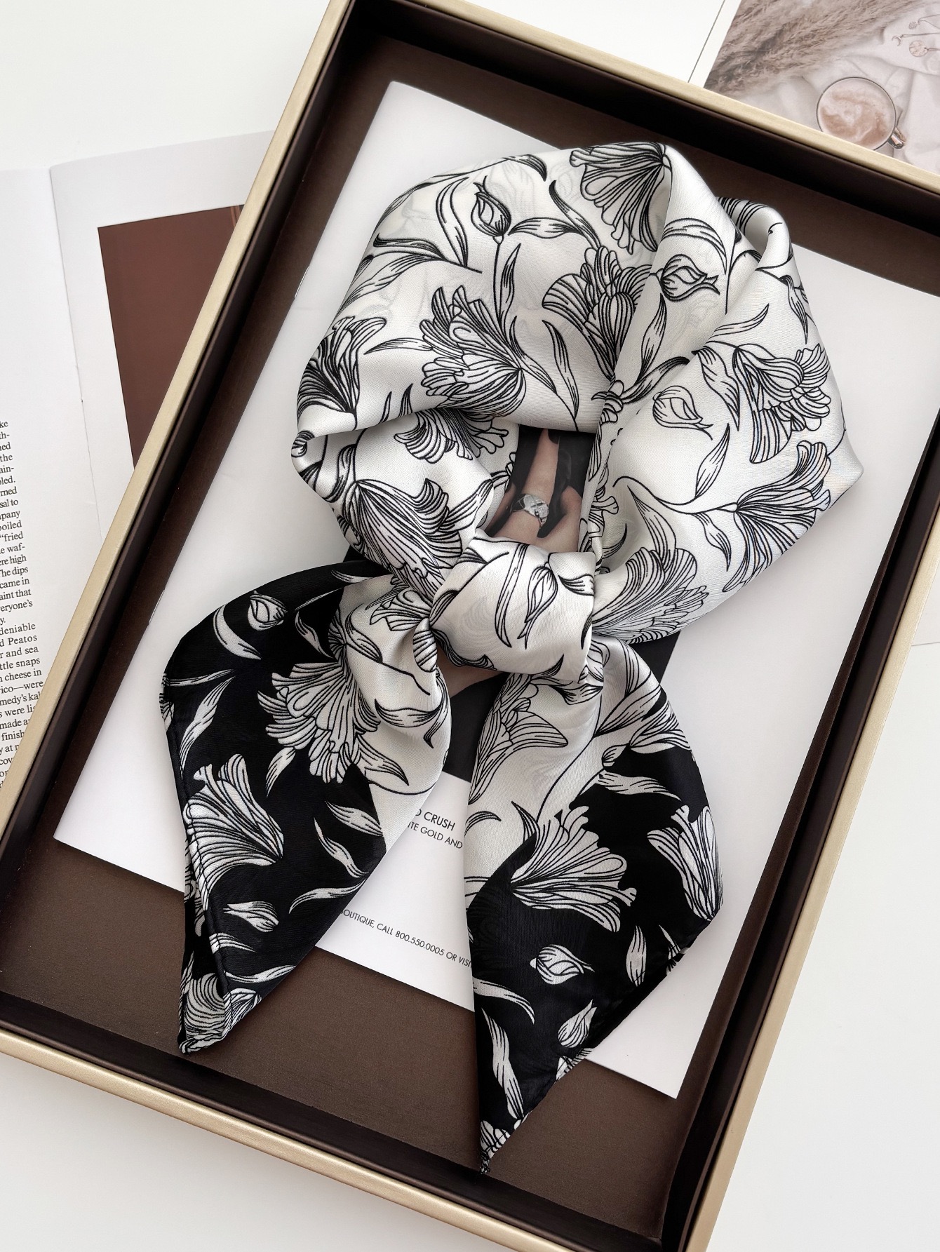 2. Thiết kế : Khăn quàng cổ hình vuông nhỏ. Phong cách phù hợp tất cả. Hoạ tiết sang trọng