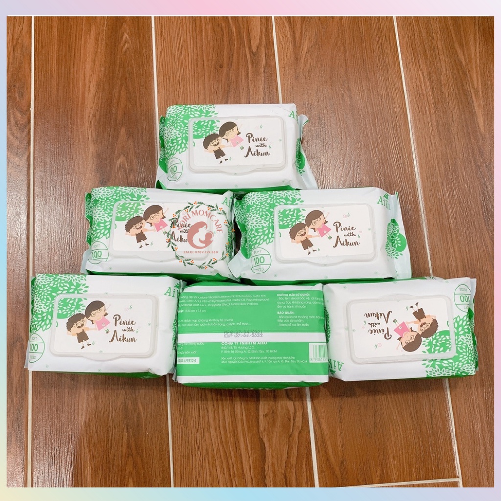 Giới thiệu Khăn ướt Aikun kháng khuẩn 100 tờ không mùi vải bi màu xanh