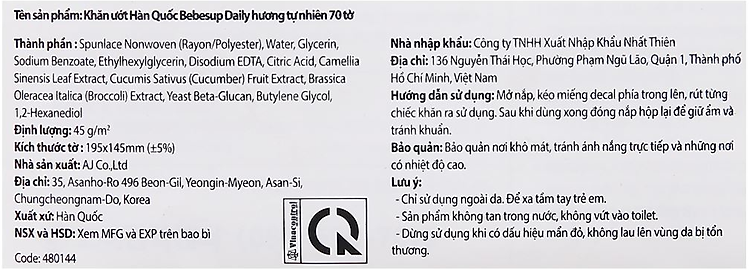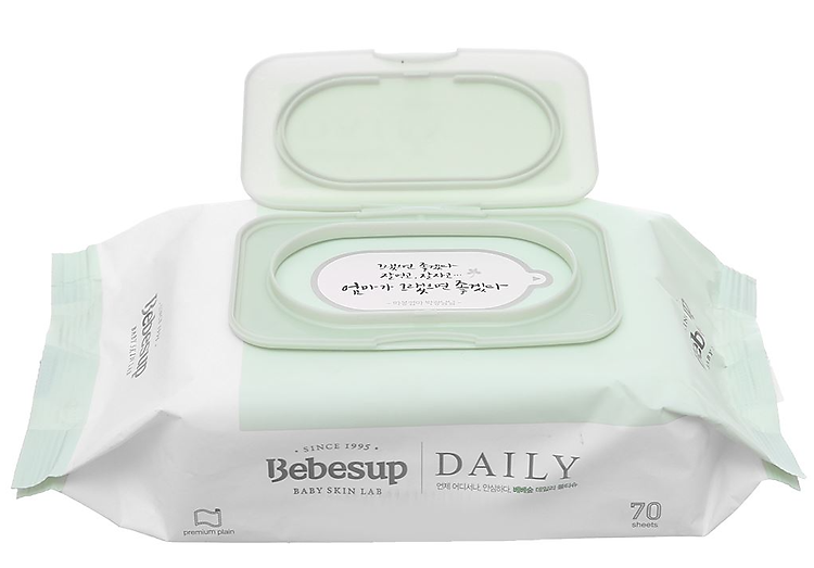 Khăn ướt em bé thương hiệu khăn ướt em bé Bebesup là loại đặc biết dành cho trẻ sơ sinh và trẻ có làn da nhạy cảm. Khăn ướt em bé Bebesup Daily hương tự nhiên gói 70 tờ vải không dệt có nguồn gốc tự nhiên, an toàn cho da.