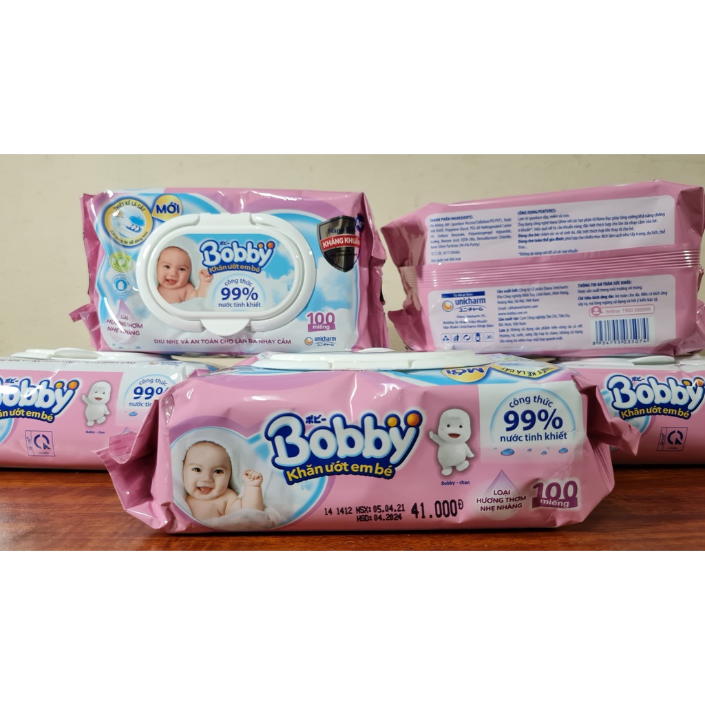 Giới thiệu Khăn ướt, giấy ướt Bobby nắp nhựa 100 tờ/gói cao cấp, có hương/không mùi