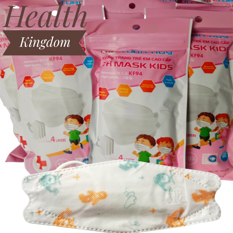 Khẩu trang 4D KF94 4 lớp cho trẻ em 5 tuổi đến 10 tuổi phong cách Hàn Quốc health Kingdom, 10 chiếc/bịch