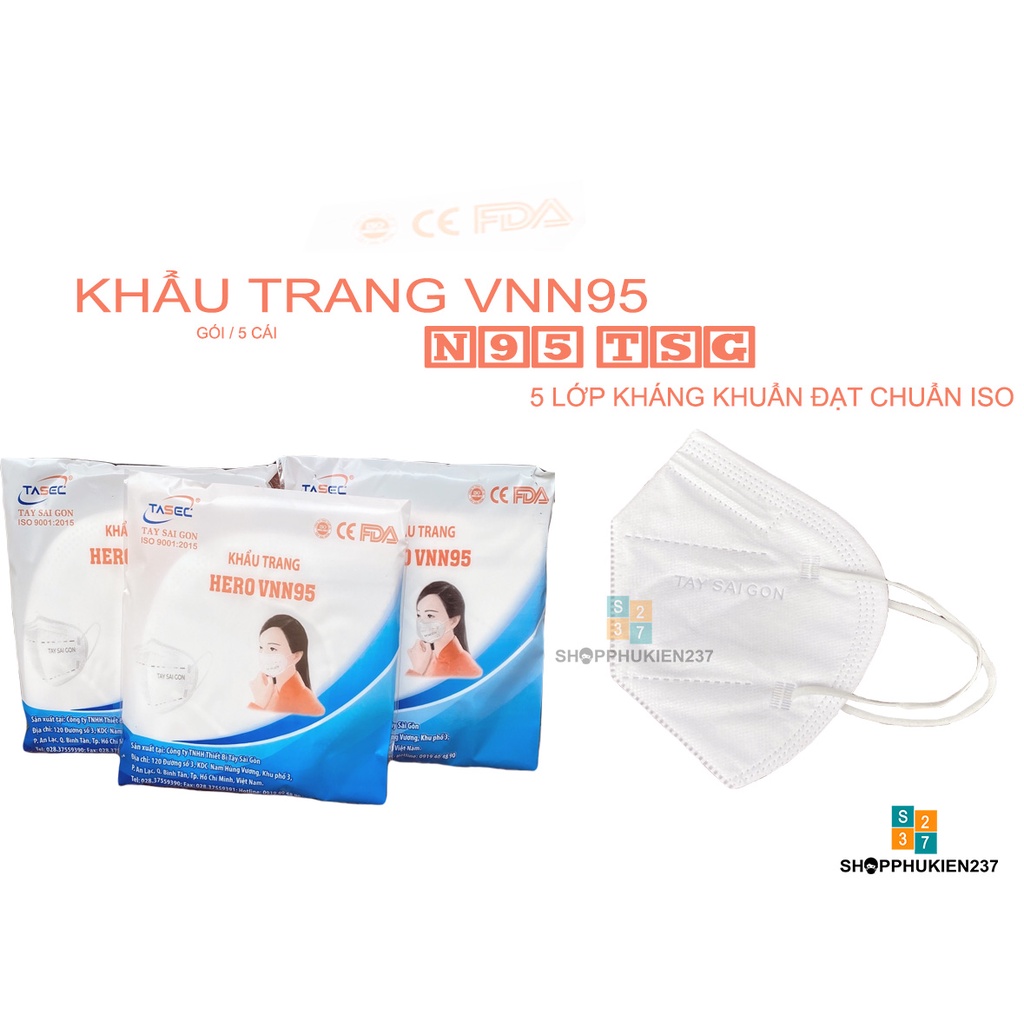 Thương hiệu: Tây Sài Gòn - TSG N95 Xuất xứ: Việt Nam Màu sắc : Trắng Quy cách đóng gói: 5 cái / 1 Hộp