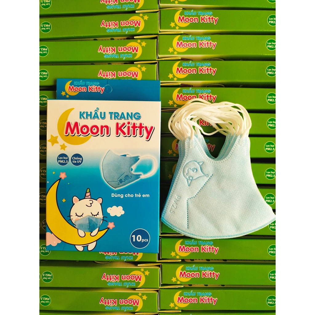Khẩu Trang 5D Kids Mask kháng khuẩn chống bụi mịn Nhật Minh Moon Kitty 3D 4D 6D 3M KF94 N95 cho bé trẻ em. Hộp 10 Chiếc.