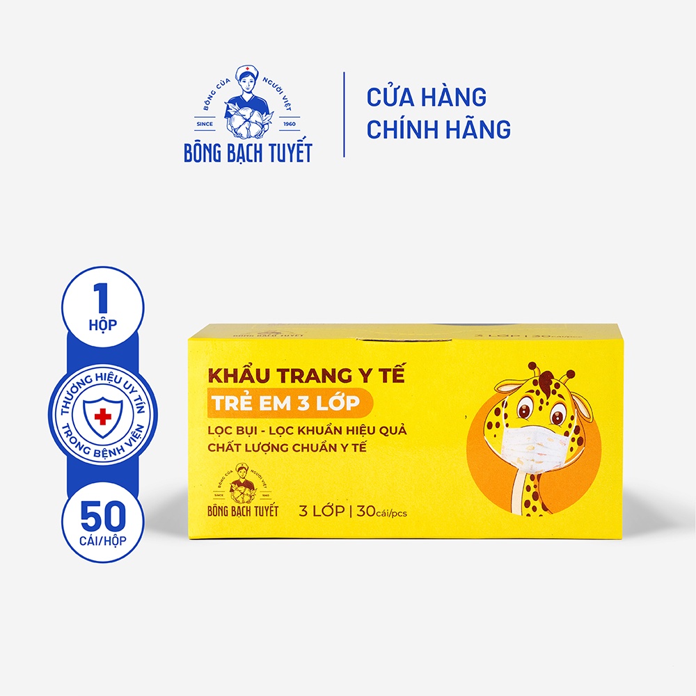 Giới thiệu Khẩu trang Bông Bạch Tuyết Trẻ Em 3 lớp cho bé 6 - 11 tuổi (30 cái/ hộp)