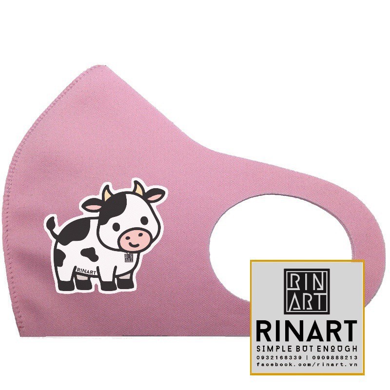 Khẩu trang con bò sữa Rinart siêu dễ thương kháng bụi chống nắng chất liệu dày dặn bền đẹp có thể giặt tái sử dụng nhiều lần