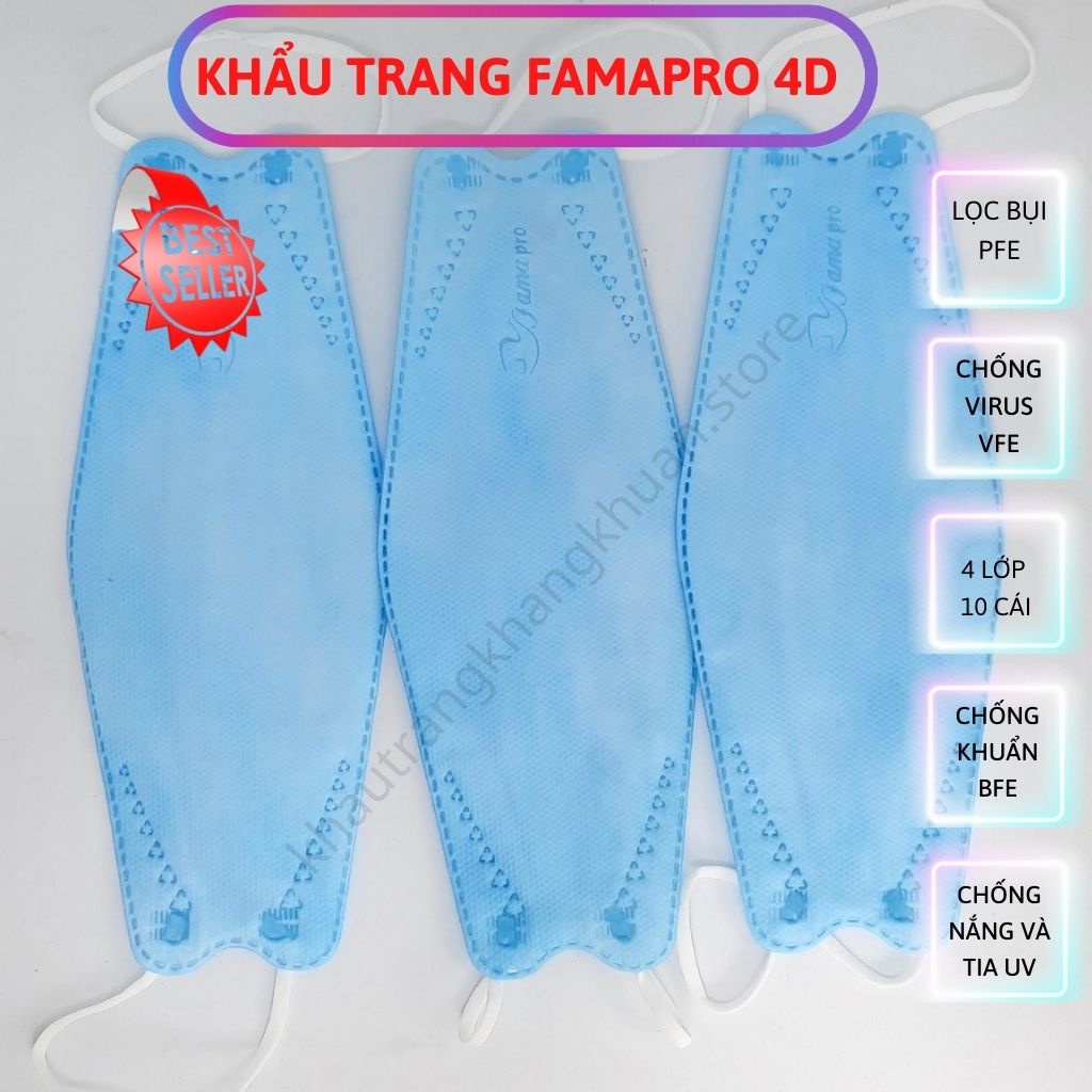 💎 Khẩu trang FAMAPRO, Khẩu trang 4D (khẩu trang con cá) thiết kế 4D giúp không bị hít vào da mặt và không làm lem son, giữ ẩm được cho làn môi quyến rũ. Với chất liệu vải không dệt, chống thấm, lọc bụi mịn bảo vệ gần 99% các loại bụi mịn, ngăn cản không cho chúng đi vào phổi qua đường hô hấp.