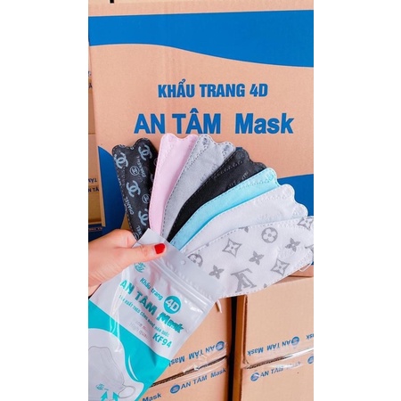Khẩu trang 4 lớp 4D An Tâm Mask KF94 được sản xuất tại Việt Nam theo công nghệ 4D và chuẩn KF94 Hàn Quốc có tác dụng vượt trong việc kháng khuẩn và lọc sạch bụi mịn. 👉Thiết kế đa chiều thoáng khí, không bí thở, không lem son môi, không có cảm giác bị nóng khi sử dụng. ➡️Thành phần: -Vải không dệt 100% PP vải SMS cao cấp. -Thanh nẹp mũi giúp định hình tốt hơn khi đeo. -Tai thun làm từ sợi Polyester và sợi Spandex. ➡️Đặc điểm: -Ngăn ngừa khói bụi, vi khuẩn các bệnh lây nhiễm qua đường hô hấp. -Chất liệu vải tự nhiêu siêu mềm mịn và êm ái khi sử dụng. -Thiết kế 4D thông minh giúp vừa vặn và ôm khít vùng mặt cần thiết. -Thiết kế đa chiều thoáng khí, không bí thở, không lem son môi, không có cảm giác bị nóng khi sử dụng. ➡️Hướng dẫn sử dụng -Kéo khẩu trang che kín phần mũi và cằm. Ấn thanh nẹp ôm khít vào sống mũi. -Dùng tay kéo đều khẩu trang ôm khít khuôn mặt. -Bảo quản Nơi khô ráo, thoáng mát