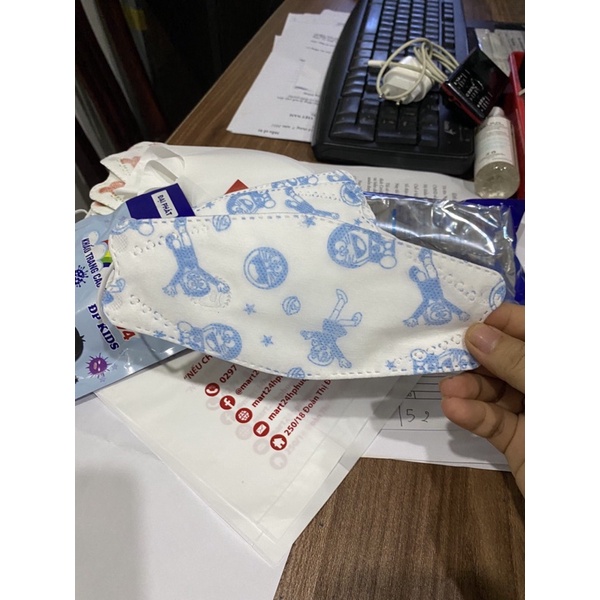 Khẩu Trang 4D Mask KF94 Kid: Túi 10 cái *** Thành phần : . Vải không dệt 100% PP vải SMS cao cấp . Thanh nẹp mũi giúp định hình tốt hơn khi đeo . . Tai thun làm từ sợi polyester và sợi Spandex .