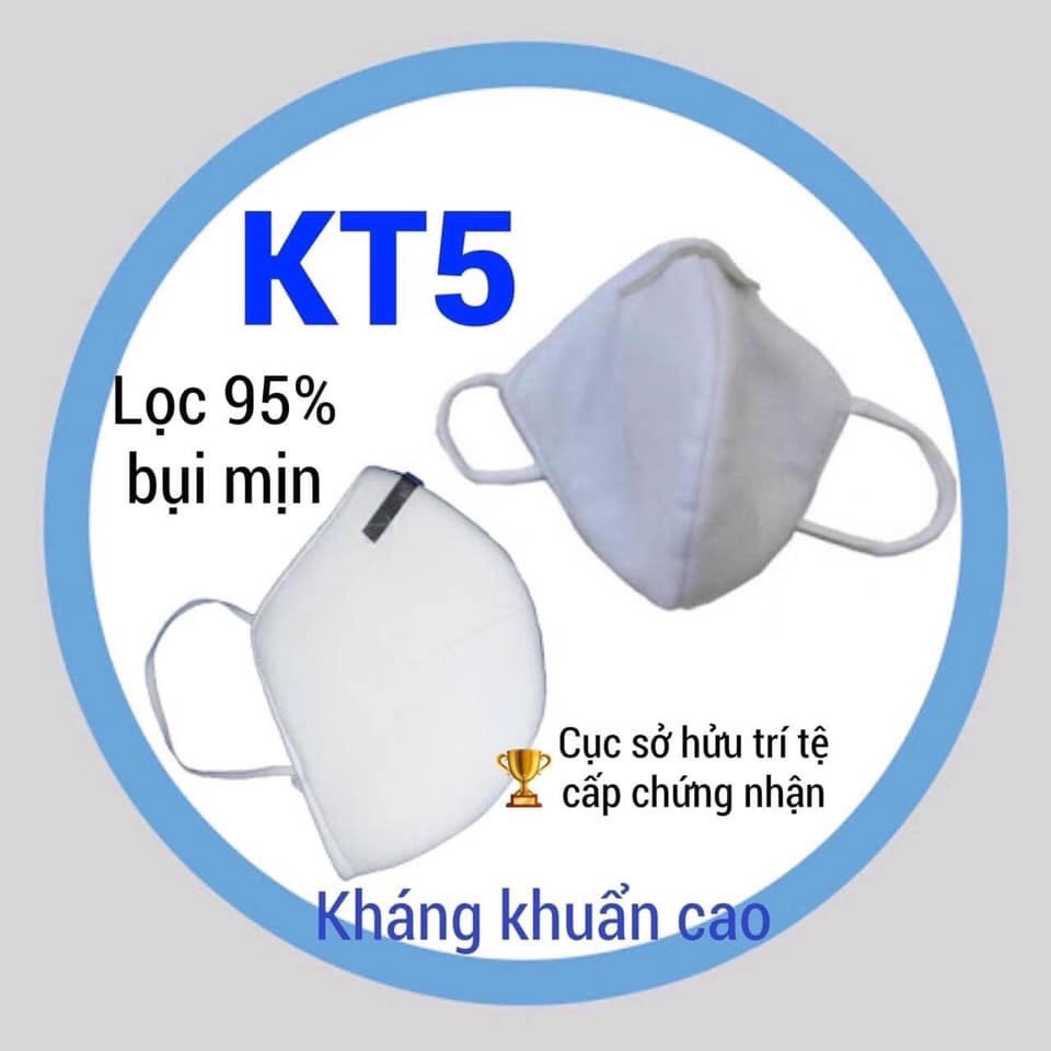 Khẩu trang KT.5 gồm 1 lớp lọc sợi tổng hợp ở giữa và 2 lớp vải sợi bao bên ngoài.