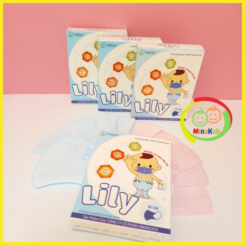 Khẩu trang Lily cho bé KT03 - Sản xuất: Công ty TNHH CSMEDI Địa chỉ: 113 Đường số 4, KCN Hải Sơn (GĐ 3+ 4), xã Đức Hòa Hạ, Huyện Đức Hòa, Tỉnh Long An - Phân phối: CÔNG TY CỔ PHẦN LIWORLDCO Địa chỉ: 279/32 Âu Cơ, Phường 5, Quận 11, Thành phố Hồ Chí Minh Được sản xuất từ sợi vải không dệt, có tác dụng lọc bụi, kháng khuẩn và ngừa vi rút lây nhiễm. Khẩu trang từ vải quá dày và bí đối với bé, nên bé thường không thích đeo. Khẩu trang Lily cho bé vừa thiết kế phú hợp ôm sát mặt bé nhưng không hề khó thở và khó chịu phần mũi nên nếu các mẹ muốn tập cho con có thói quen đeo khẩu trang bảo vệ khi ra ngoài thì đừng bỏ qua bạn ý Khẩu trang Lily cho bé sản xuất và đóng gói tại Việt Nam nên chất lượng cm yên tâm nhé. Hộp 10 cái :5 màu xanh và 5 màu hồng.