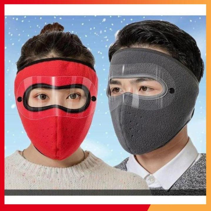 Khẩu trang ninja 2 in 1 có kính Lót nỉ Chống bụi, mưa gió lạnh chống nắng cực tốt cực ấm mềm mịn Thông tin Khẩu trang ninja che kín mặt kín tai vải nỉ dán gáy chống nắng chống gió lạnh mùa đông - khau trang KHẨU TRANG NINJA 2 in1 LÓT NỈ - CHẤP MỌI NẮNG GIÓ - Chống gió lạnh, chống nắng hanh, chống tia cực tím, chống sương mù, khói bụi.. - Che kín cả khuôn mặt luôn nhé, mà lại ko bí bách khó chịu đâu ạ, ngăn được hết bụi bẩn nắng gió nha. - Chất liệu vải nỉ dày dặn, thấm hút mồ hôi nhé Khẩu trang ninja 2 in 1 có kính Lót nỉ Chống bụi - Miếng dán chắc chắn, dễ sử dụng, thích hợp mọi khuôn mặt - Che được nguyên mặt và cả tai luôn, đảm bảo nắng gió ko lọt vô được - Giặt thoải mái, dùng nhiều lần - Dáng FREE SIZE.Thích hợp với cả nam và nữ Khẩu trang ninja 2 in 1 có kính Lót nỉ Chống bụi Khẩu trang ninja
