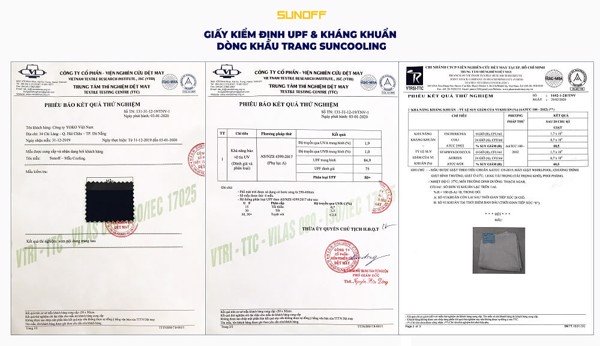 Kết quả thí nghiệm & xác nhận từ Viện Dệt May Việt Nam với dòng sản phẩm Khẩu trang SunCooling.