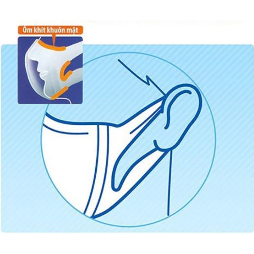 * Hướng dẫn sử dụng: Mở rộng khẩu trang từ đường rãnh phía trên của khẩu trang. Lần lượt đeo hai quai vào vành tai, sau đó điều chỉnh cho vừa vặn