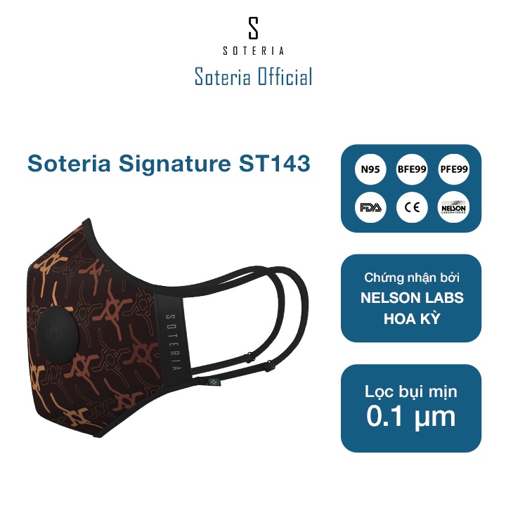 Giới thiệu Khẩu trang tiêu chuẩn Quốc Tế SOTERIA Signature ST143 - Bộ lọc N95 BFE PFE 99 lọc đến 99% bụi mịn 0.1 micro- Size S,M,L