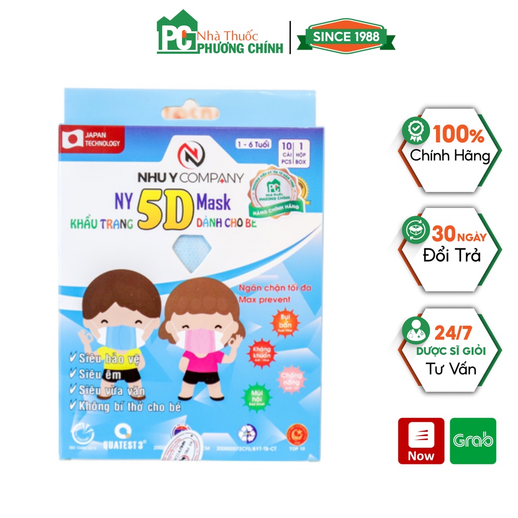 Khẩu Trang Trẻ Em 5D Như Ý - Hộp 10 cái - Dành cho trẻ từ 1-6 tuổi