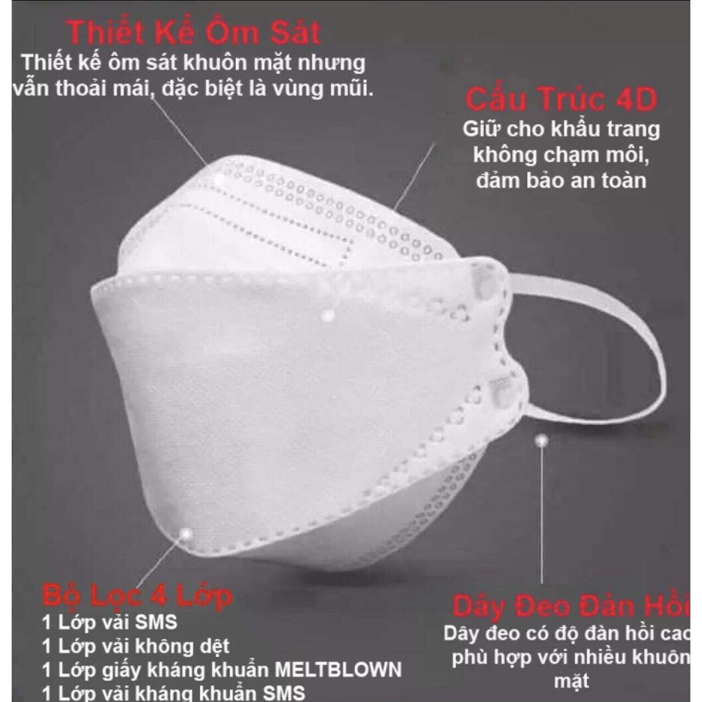 ️️ Cấu trúc 4 lớp lọc khẩu trang trẻ em KF94: + Lớp ngoài là lớp vải không dệt thời trang cao cấp. + Lớp 2 là màng lọc thô vải không dệt . + Lớp 3 là màng lọc Micro filter. Lọc được > 95% bụi PM 2,5 và chặn được > 99% vr. + Lớp trong cùng là vải không dệt cao cấp, không kích ứng da.