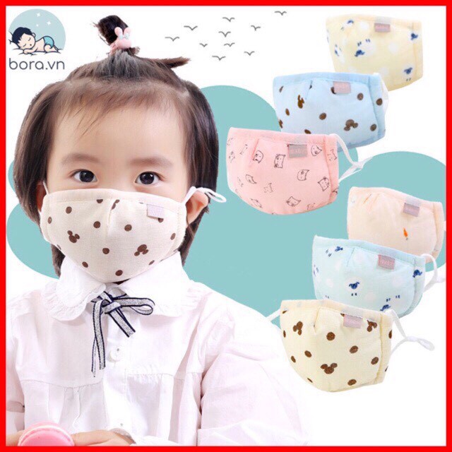 - Khẩu trang cho bé, chất liệu 100% vải xô thấm mồ hôi, giúp bé luôn được thoải mái dễ chịu khi đeo.