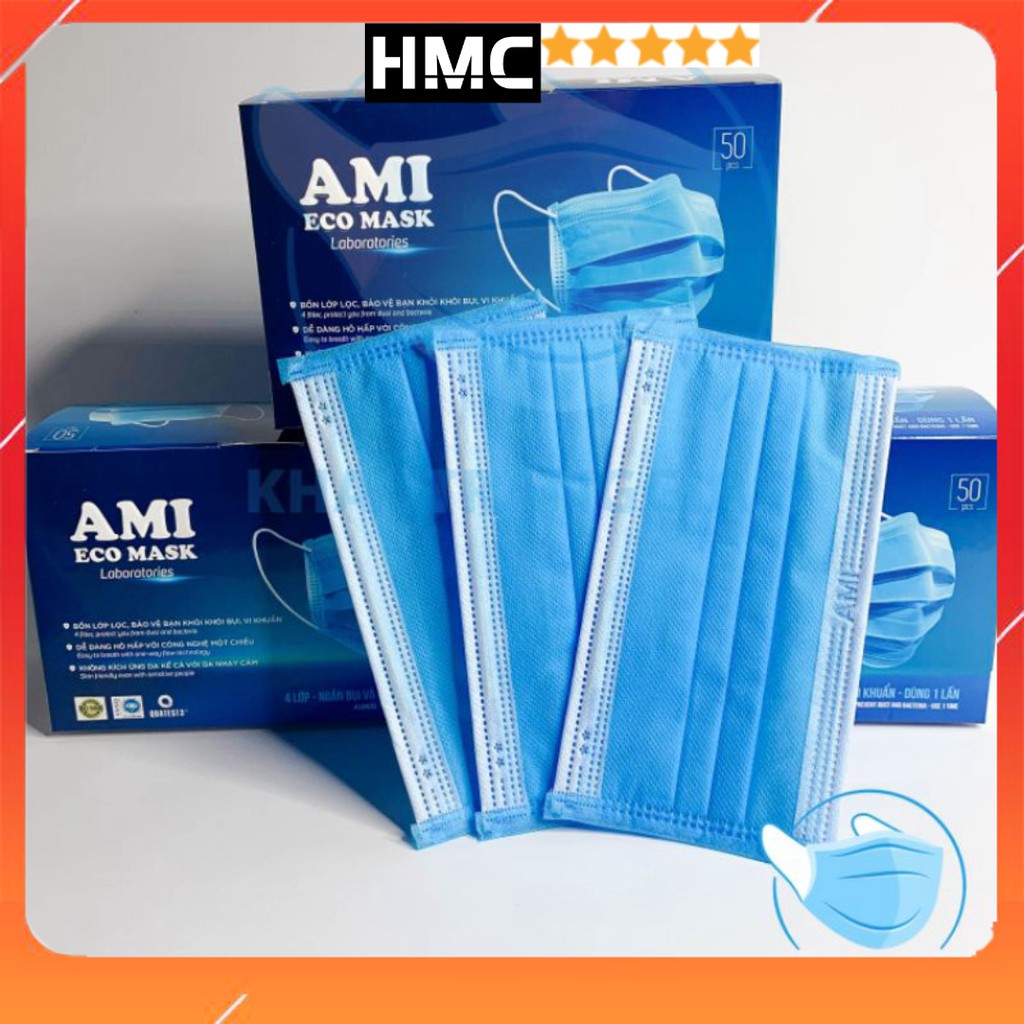 Giới thiệu Khẩu trang y tế Ami hàng 4 lớp kháng khuẩn 50 chiếc cao cấp màu xanh cao cấp