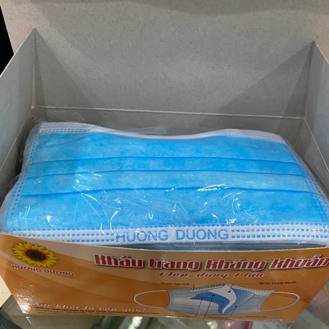 Khẩu trang y tế Hương Dương xanh 4 lớp (hộp 50 chiếc)