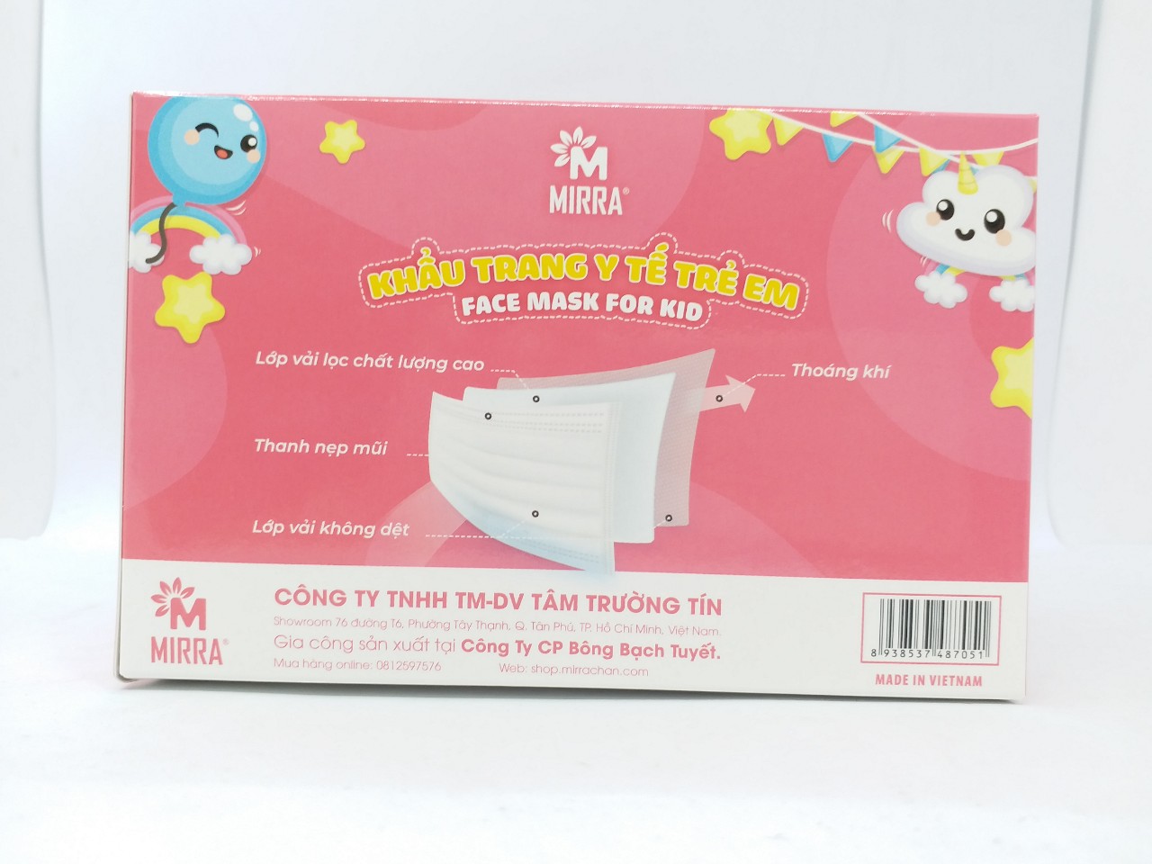 Khẩu trang y tế trẻ em MIRRA cho bé từ 6 tới 12 tuổi.