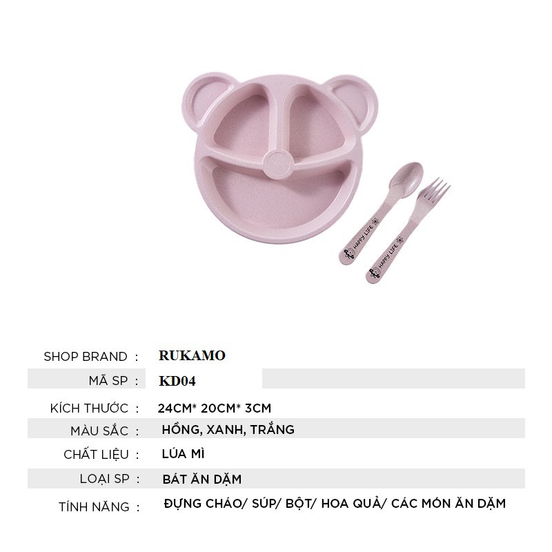 Giới thiệu Khay ăn dặm lúa mạch cho bé chống đổ Hàn Quốc cao cấp an toàn hình gấu đáng yêu RUKAMO KD04