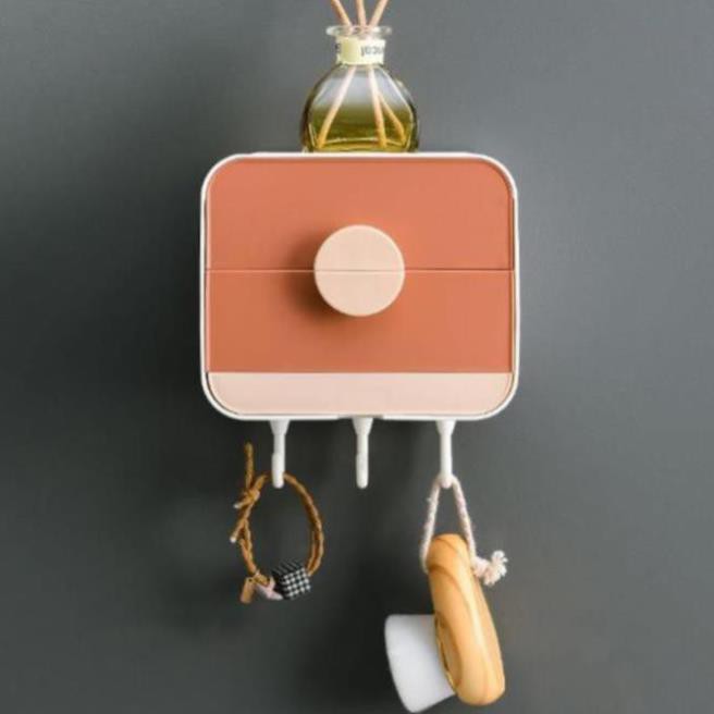 Khay đựng xà bông 2 lớp cao cấp dán tường Hộp đựng xà phòng dính tường có móc treo tiện dụng