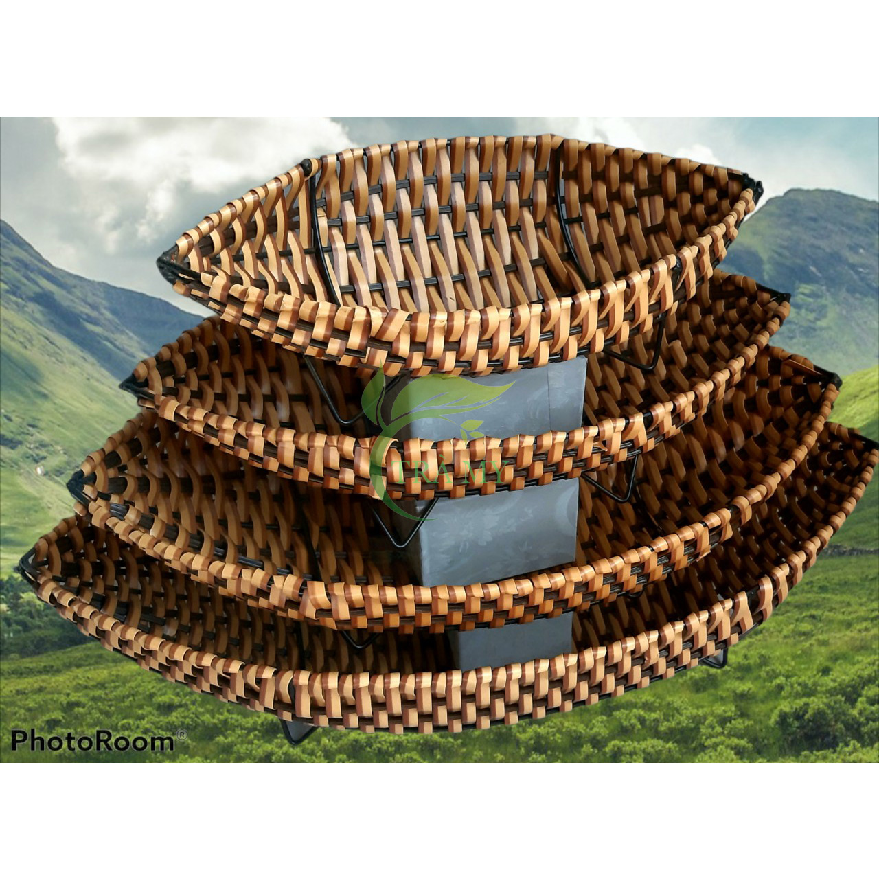 Chất liệu: Khung sắt sơn tĩnh điện, đan bằng sợi nhựa giả mây.
