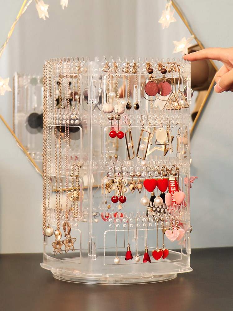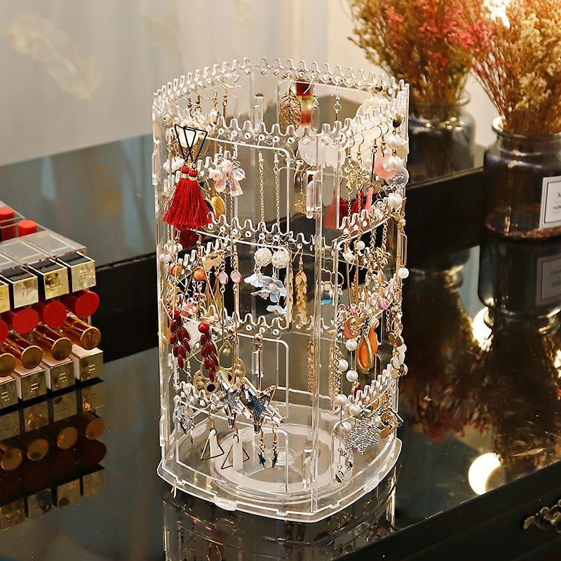 Khay treo dây chuyền, trang sức, khuyên tai mica trong suốt xoay 360 độ - Kệ treo bông tai tiện ích