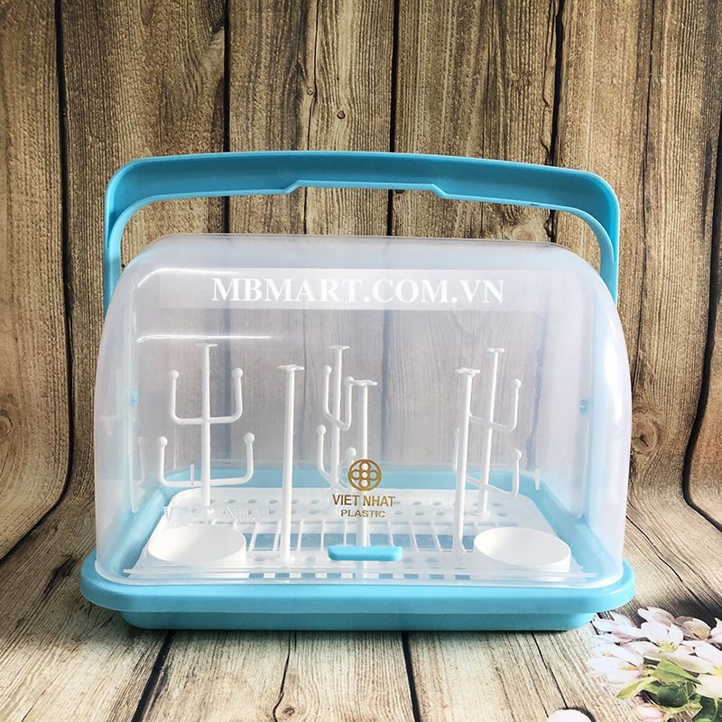 Khay úp bình sữa có nắp đậy được làm từ nhựa sạch PP cao cấp không chất độc hại, tuyệt đối an toàn cho sức khỏe của bé. Thiết kế nhỏ gọn, tiện lợi giúp bảo quản bình sữa, ly cốc sạch sẽ, vệ sinh. Kệ có nhiều cộc để cắm bình sữa, ly cốc, giúp bình ly nhanh khô ráo. Giá có khay lưới giúp nước chảy xuống đáy dễ dàng và ngăn vật dụng tiếp xúc trực tiếp với đáy, từ đó mà vật dụng luôn khô ráo, thoáng mát. Nắp đậy kiểu lật giúp đóng mở nắp dễ dàng, bảo quản vật dụng vệ sinh, sạch sẽ, tránh ẩm mốc, côn trùng. Kệ có quai xách thuận tiện việc di chuyển, mang theo đi xa.