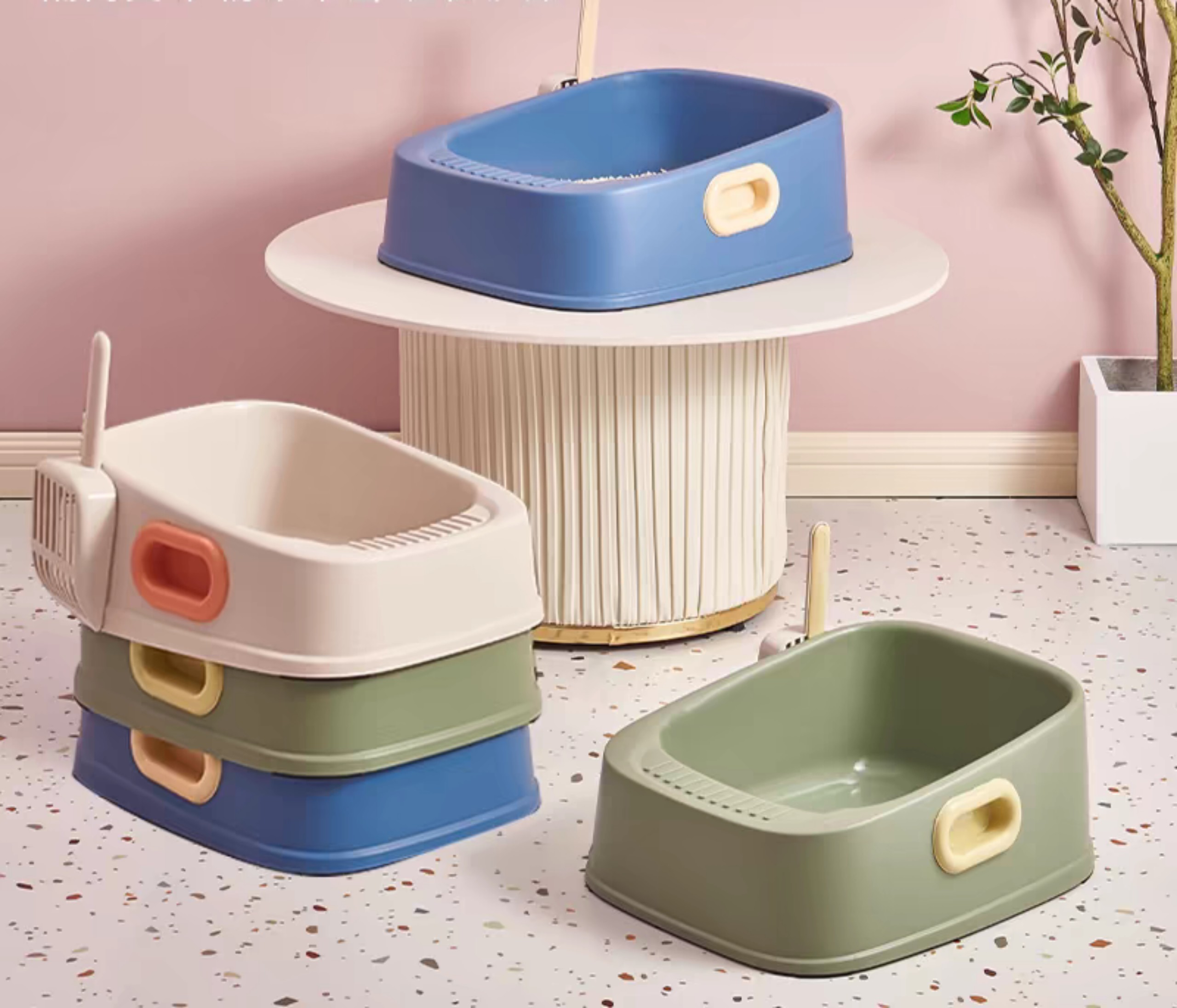 Khay Vệ Sinh, Thau Cát Vệ Sinh cho Mèo Hình Vuông, Có tay cầm hai bên
