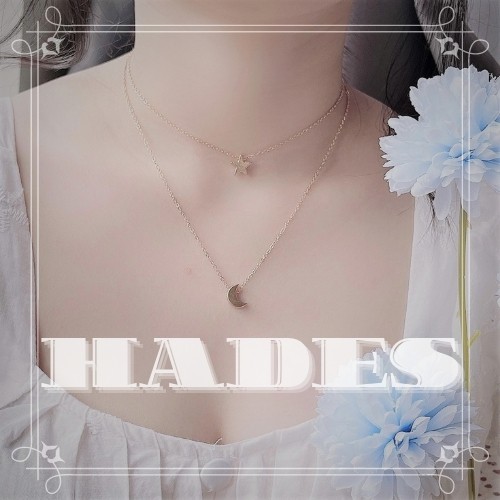 Giới thiệu [Xả kho] Vòng cổ xích hợp kim choker layer ngôi sao - dây chuyền mặt trăng retro necklace phụ kiện trang sức Hades.js