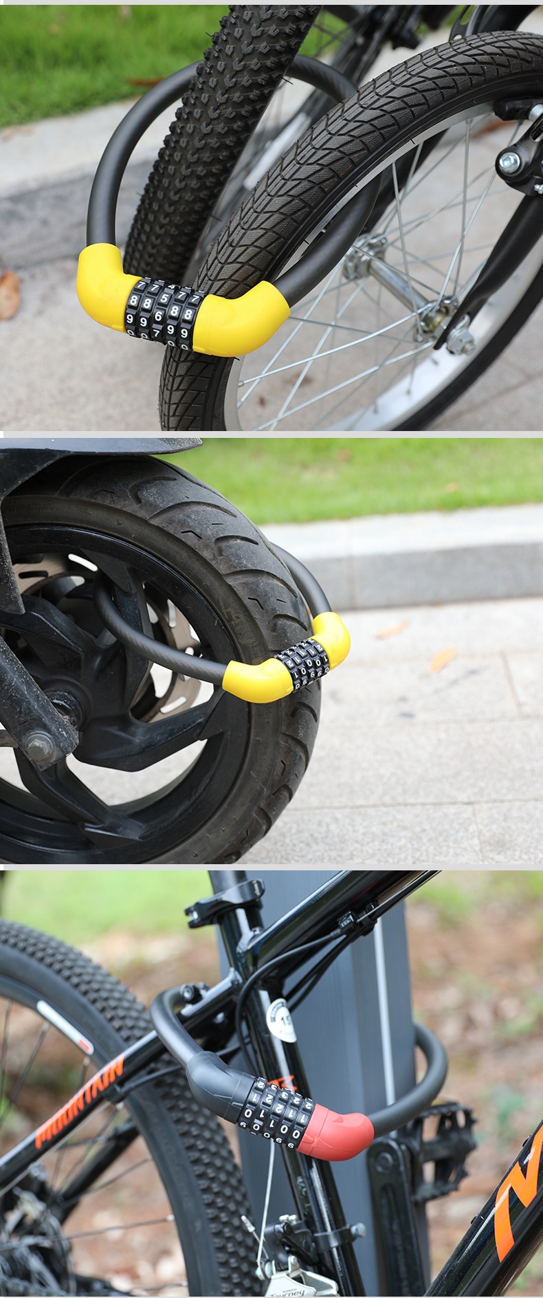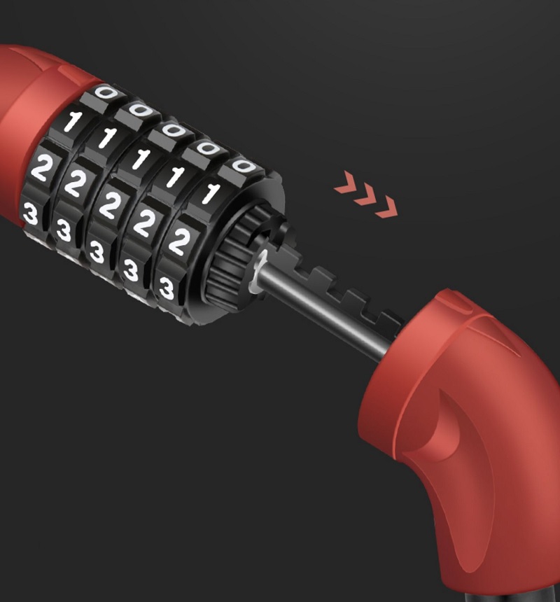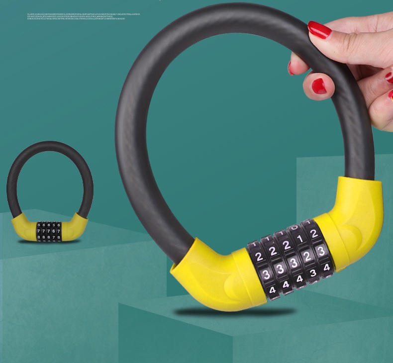 Ổ khóa với lõi thép to bọc nhựa PVC với 5 dãy số kèm tính năng thay đổi mật khẩu dễ dàng thao tác khi khóa và mở khóa, phù hợp dùng để khóa xe đạp, xe máy, khóa cổ