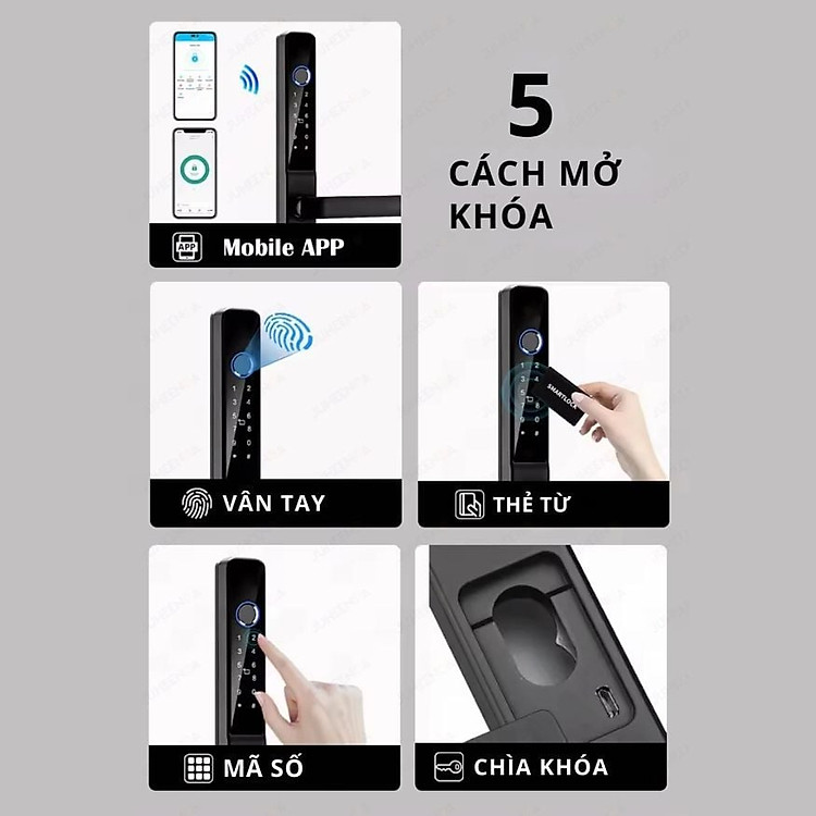 Lưu ý: Để mở khóa từ xa qua Wifi không giới hạn khoảng cách, cần trang bị thêm Gateway (mua rời).