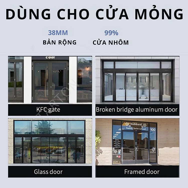 Loại cửa phù hợp: Cửa nhôm hệ, cửa sắt hộp, cửa nhựa composite, cửa kính khung bao.