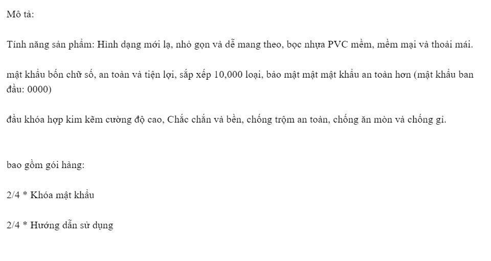 Mã Khóa 4 số chống trộm,có thể thay đổi được mã số theo ý muốn