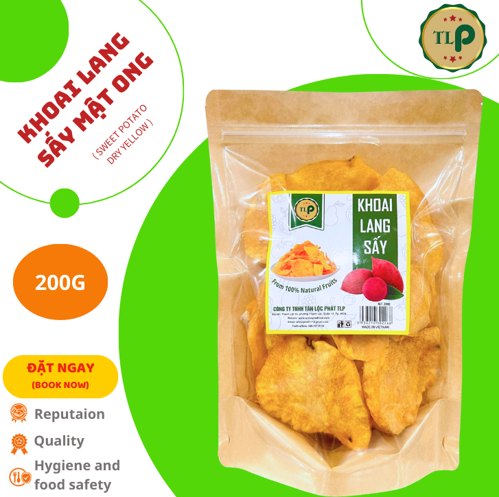 - Chế Biến Tinh Tế: Quy trình chế biến được thực hiện cẩn thận để giữ lại hương vị tự nhiên và độ giòn của khoai lang, từ đó tạo nên sản phẩm sấy khô hoàn hảo.