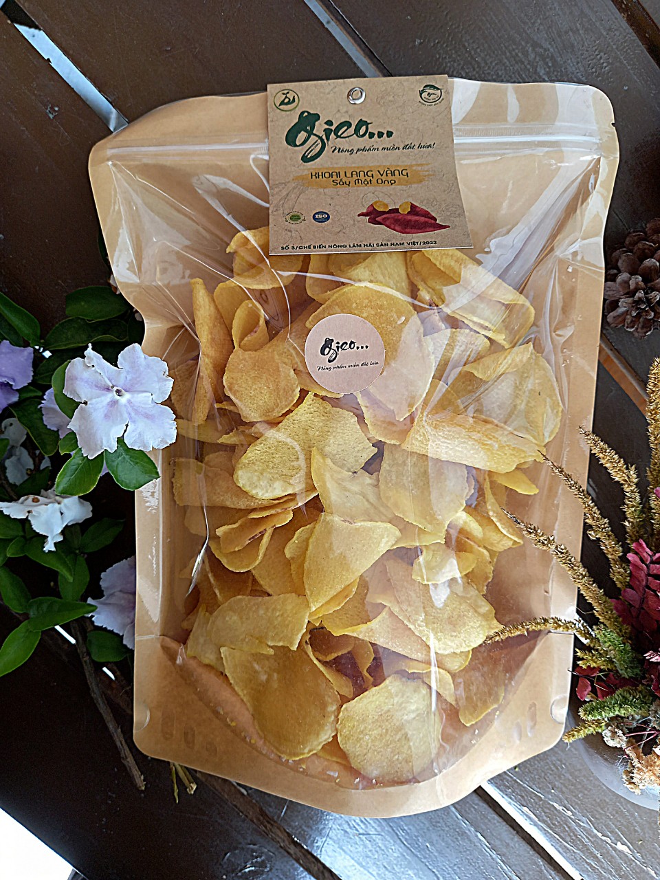 Địa chỉ tổ chức chịu trách nhiệm về hàng hóa | 20 Nguyễn Du, TDP Quảng Lạc, thị trấn Dran, Huyện Đơn Dương, Tỉnh Lâm Đồng. Được chế biến bởi khoai lang vàng trồng và chăm sóc theo tiêu chuẩn Vietgap tại huyện Đơn D |