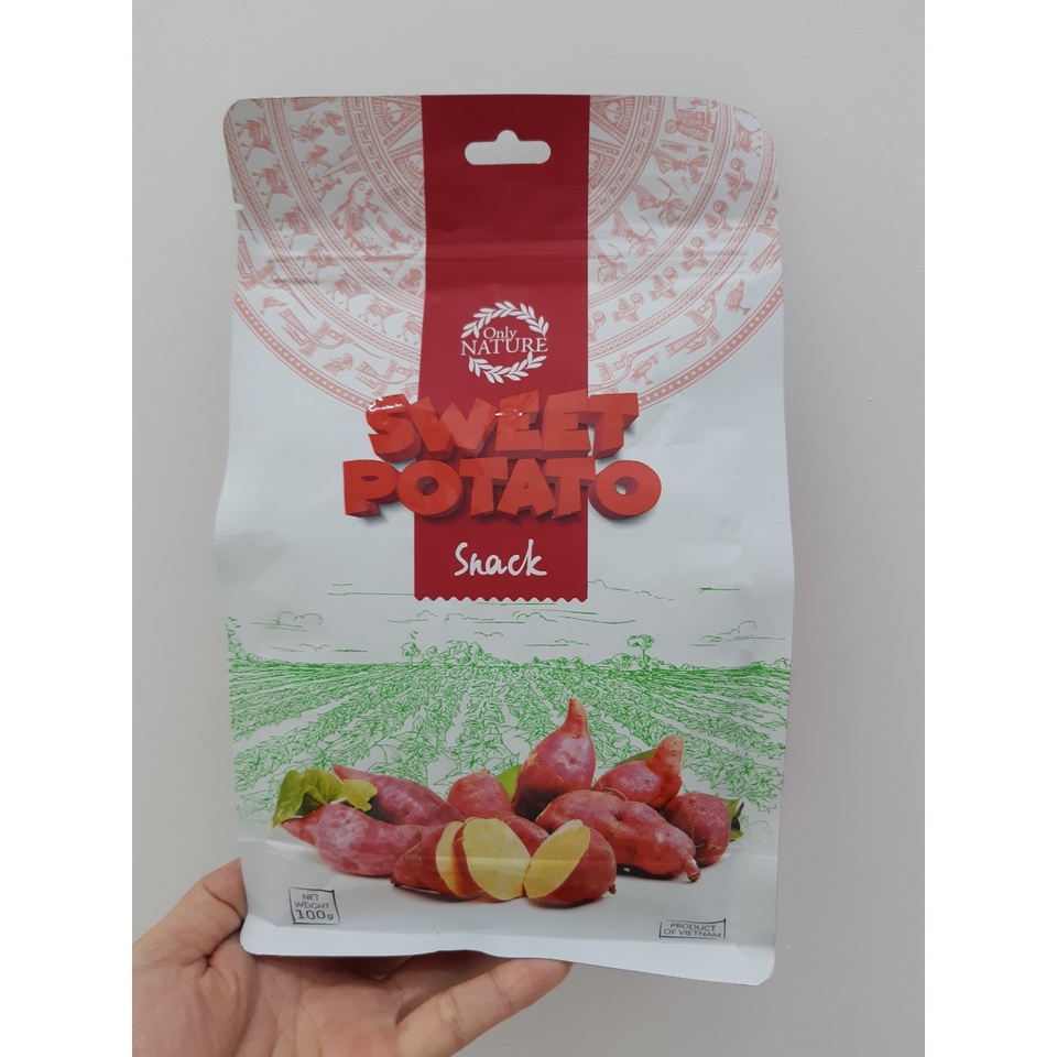 Khoai lang vàng sấy (QT0026) Theo một số nghiên cứu, khoai lang chỉ có ở một số nước nhiệt đới, giàu chất xơ và vitamin C, chứa nhiều loại khoáng chất như: manga, canxi, vitamin B, choline…là loại củ tốt cho sức khỏe với nhiều lợi ích: làm đẹp da, ngăn ngừa lão hóa, hỗ trợ giảm cân... Khoai lang vàng sấy được làm từ khoai lang vàng có hương thơm tự nhiên, vị bùi và ngọt dịu, giòn tan, là món ăn chơi phù hợp làm món khai vị trong các buổi tiệc liên hoan và cũng là món ăn vặt ngon để đãi khách đến chơi nhà. Khoai lang sấy sản xuất trên dây chuyền khép kín, đảm bảo vệ sinh an toàn thực phẩm, chất lượng cao, giữ được hương vị, màu sắc tự nhiên vốn có. Sản phẩm đạt tiêu chuẩn an toàn vệ sinh, không chất bảo quản, có thể sử dụng cho người ăn chay, được đóng gói tiện dụng, thuận lợi mang theo khi đi xa hay làm quà tặng.