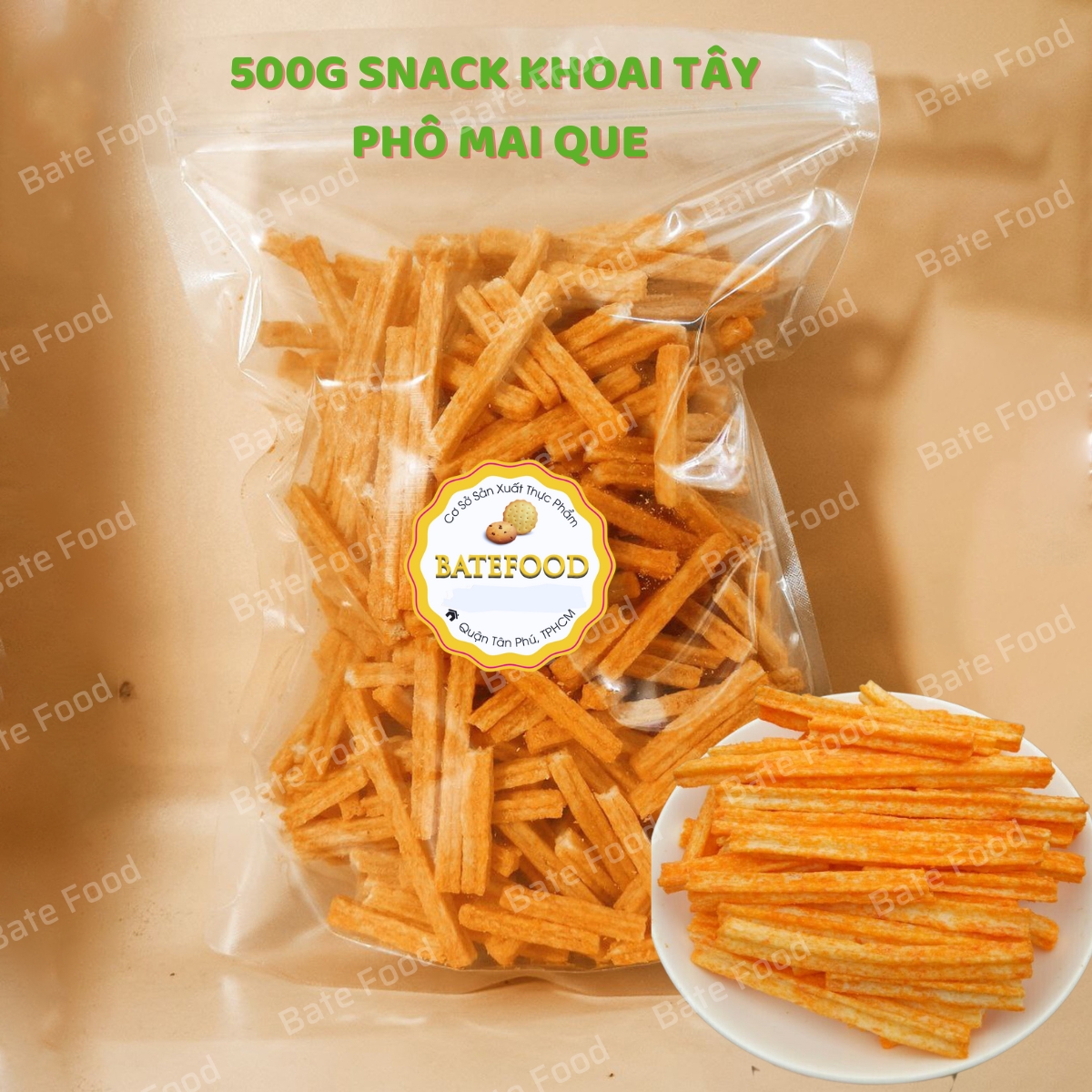 - Đừng ngần ngại, hãy đặt mua ngay Khoai Tây Phô Mai Que của Bate Food để trải nghiệm món ăn vặt tuy giá rẻ nhưng mang lại cảm giác tuyệt vời nhất. Bạn sẽ không phải thất vọng đâu, thử 1 lần là ghiền luôn nhé!