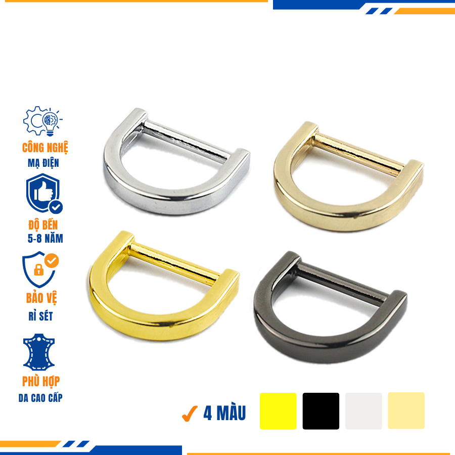 – Tên sản phẩm : Khoen d túi xách, Khoen chữ d túi xách, Khoen bán nguyệt túi xách 19mm mạ điện độ bền 5-8 năm