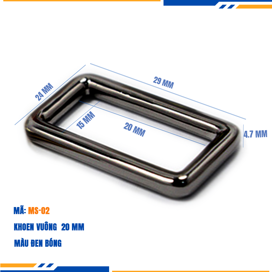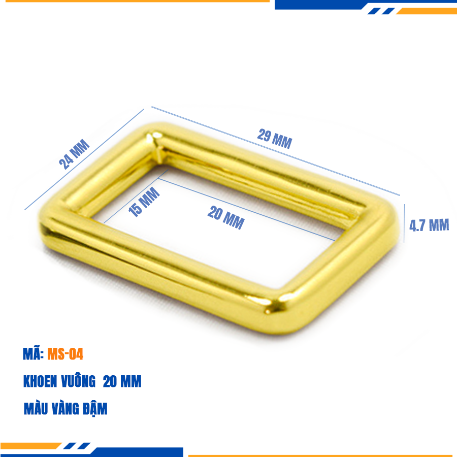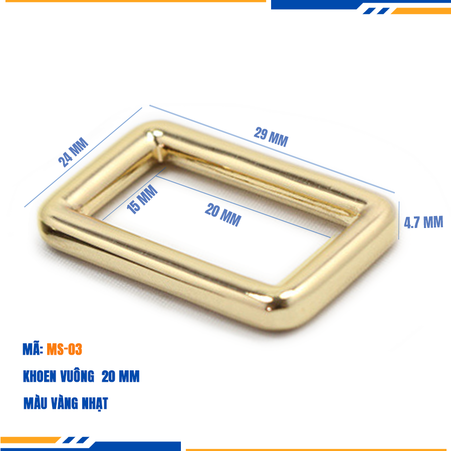 – Tên sản phẩm : Khoen vuông túi xách, khoen chữ nhật túi xách 20mm cao cấp công nghệ mạ điện độ bền 5-8 năm