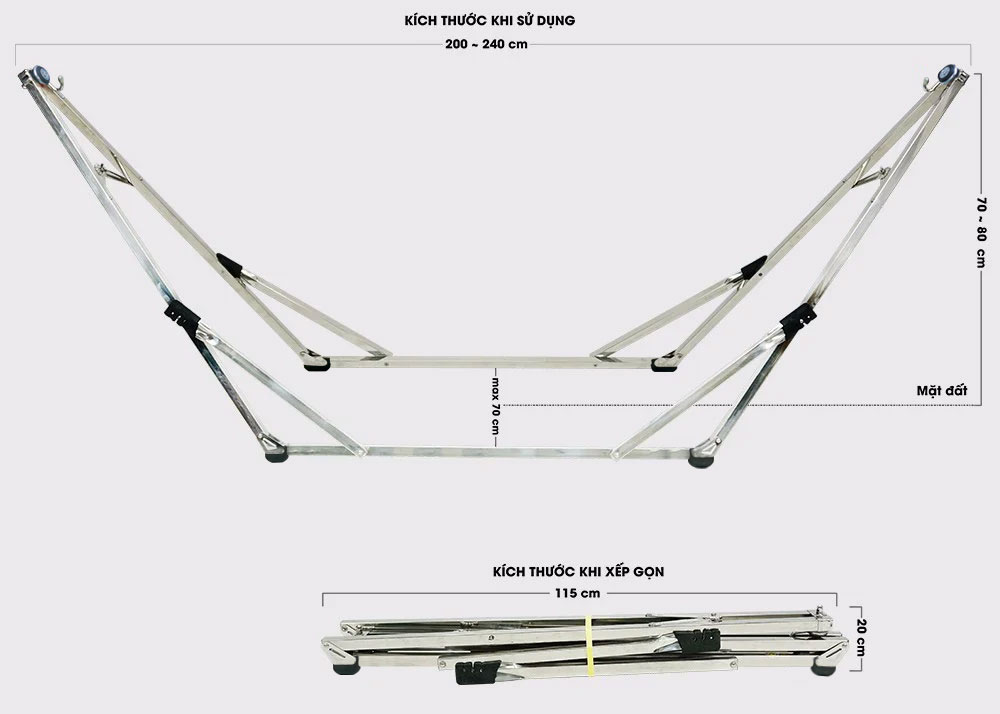 - Bộ khung võng xếp Thái Sơn ống vuông 25 - võng lưới được tạo nên từ vật liệu Inox 201 nên rất chắc chắn, cùng với kích thước khung gọn gàng, sẽ rất dễ gàng gấp xếp phù hợp với tất cả các không gian sống của mọi nhà.