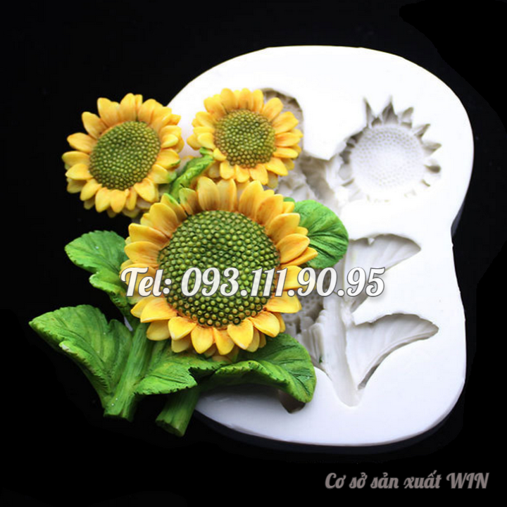 Khuôn silicon làm rau câu 3 hoa hướng dương kèm lá - Loại 10 cm - Mã số 1224