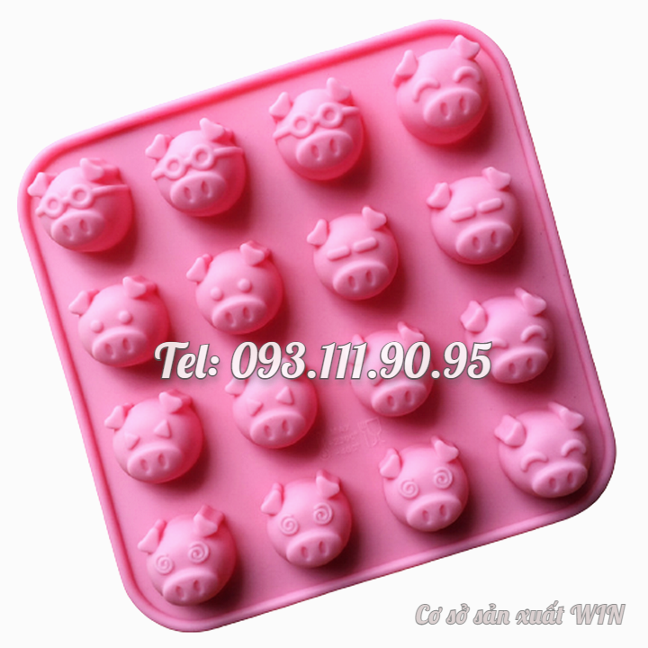 Khuôn silicon làm rau câu, socola 16 mặt heo biểu cảm - Mã số 1328