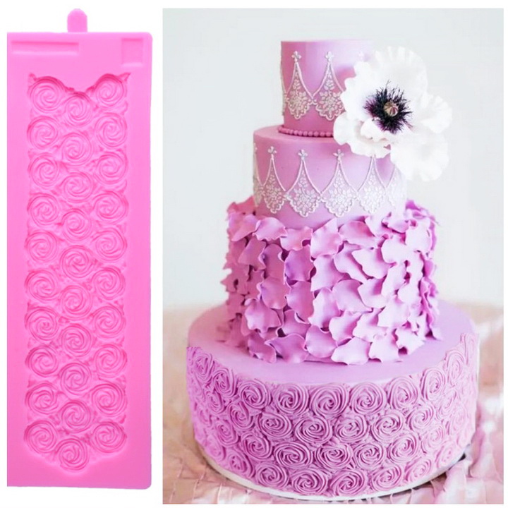 Khuôn silicon làm viền bánh, rau câu, fondant 30 hoa hồng xoáy - Mã số 1072